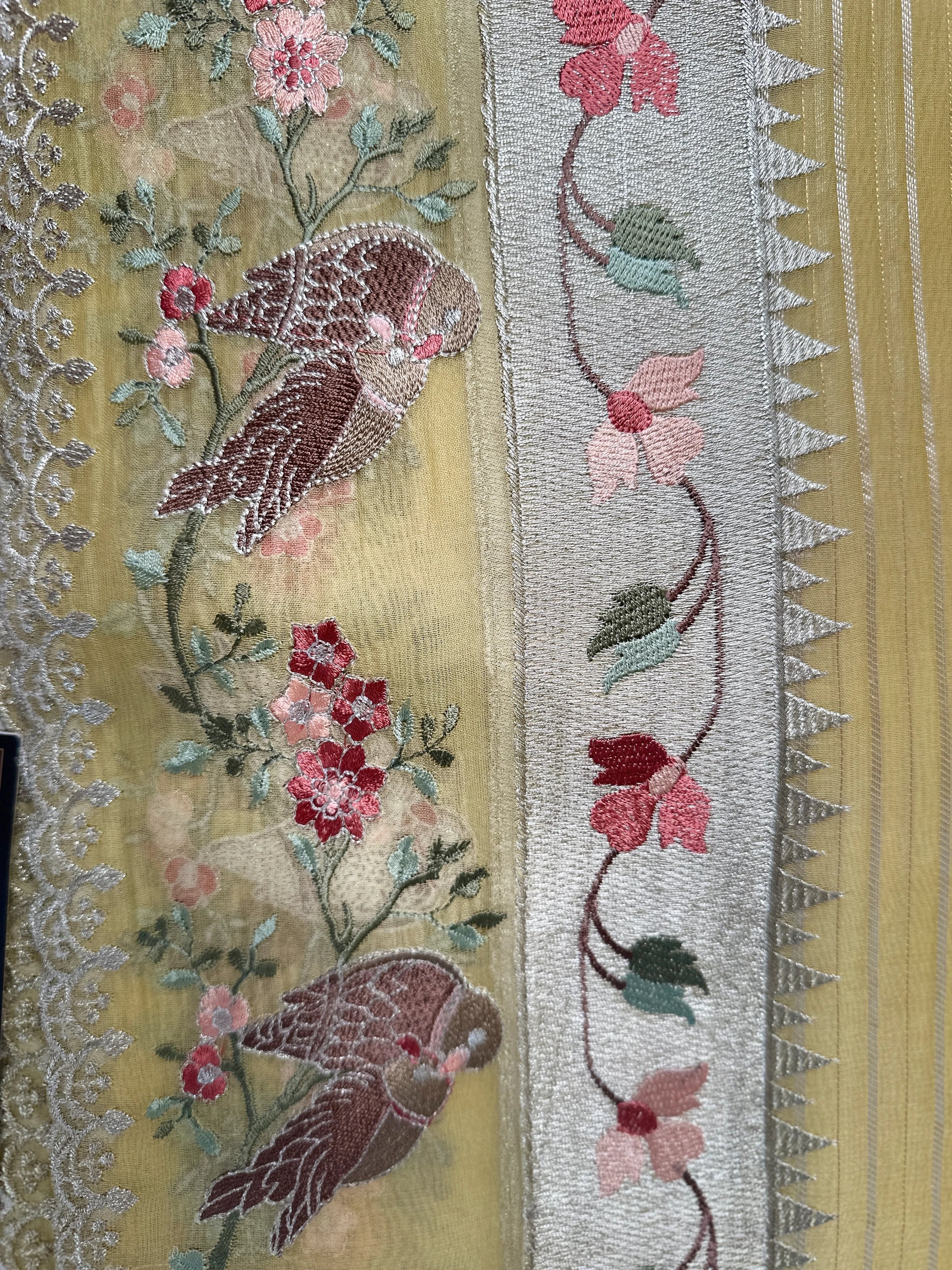 Chanderi Stripes Resham Embroidery Saree